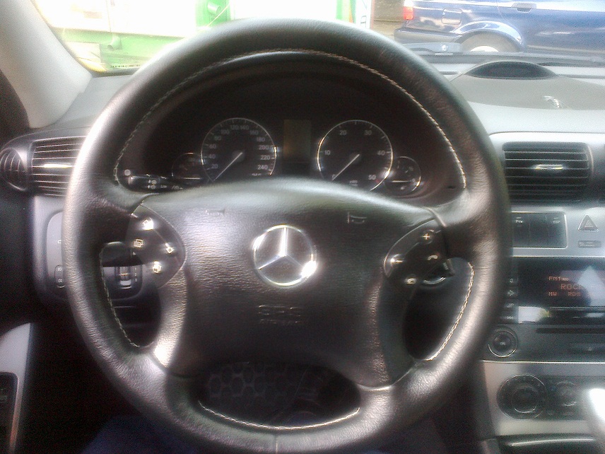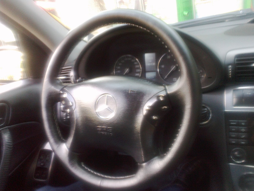 Astazi am reimbracat volanul in piele. Cusatura a fost facuta cu fir alb, imi place la nebunie cum a iesit.
